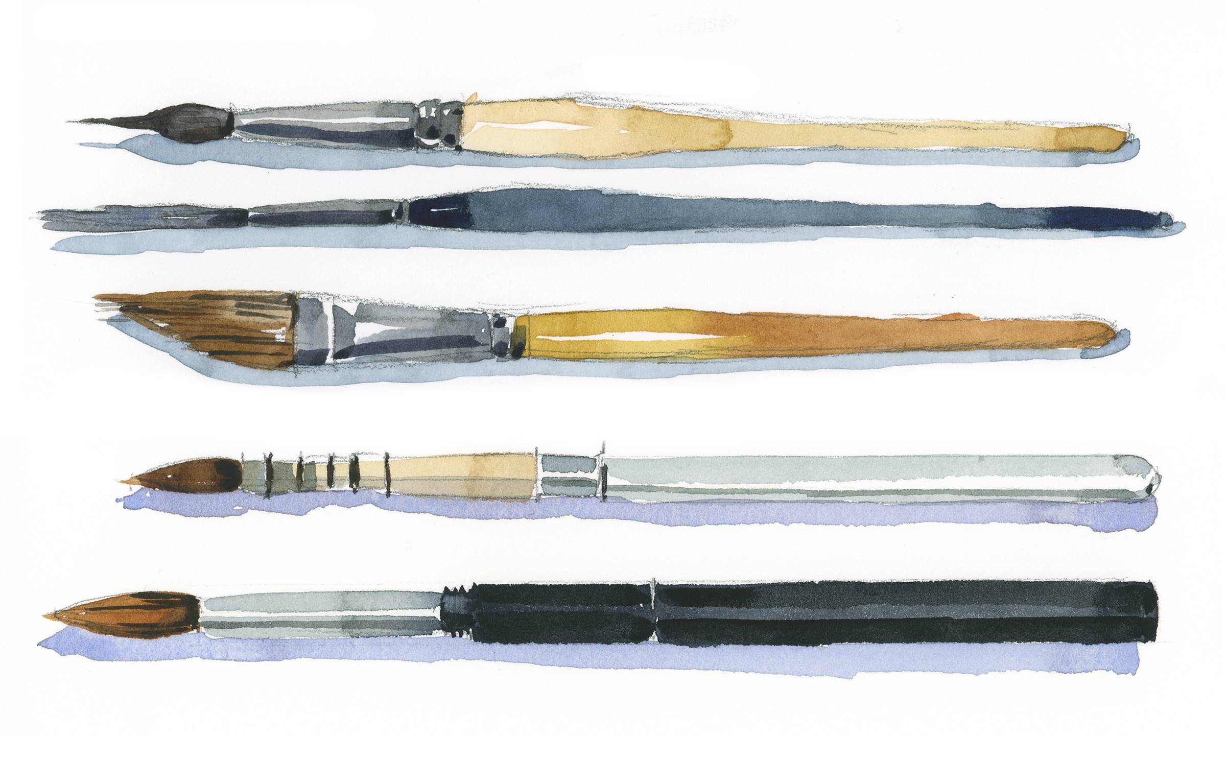 Brushes are designed to hold water and pigment. But for me, they also hold memories. Maybe it’s because you hold a brush in your hand. It connects you to your paper and paint. And therefore to the images you make, to memories of the places you visit and events that surround you.