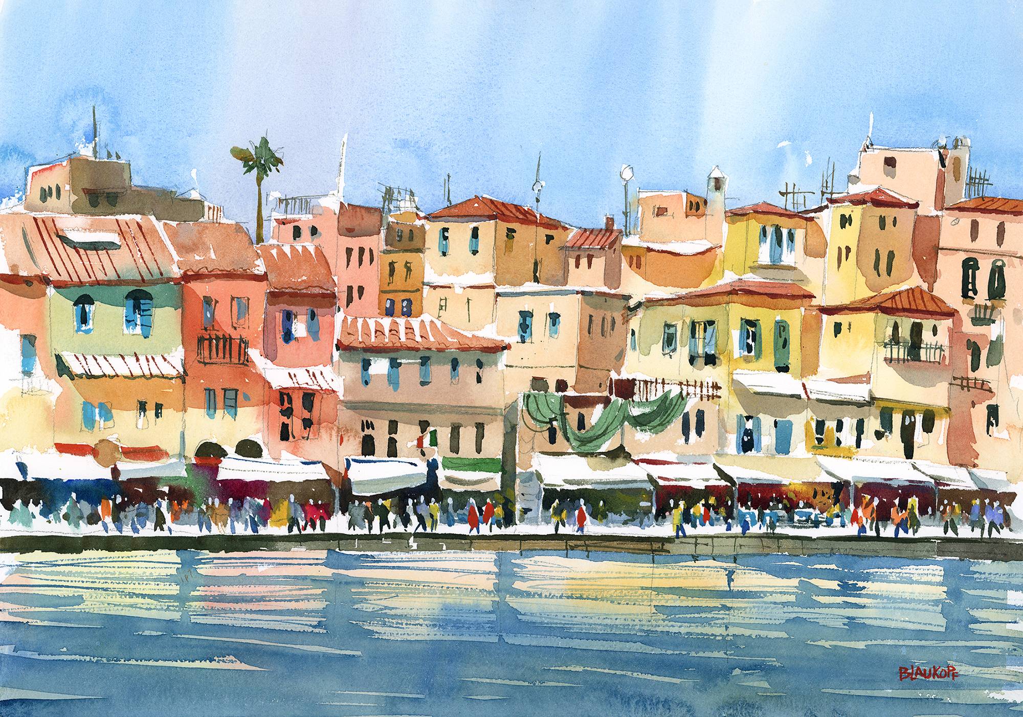 Even after so many years, I guess I’m attracted to the same subjects. In fact, I was shocked when I began digging into old paintings and discovered how similar this one is to the one above. I painted Chania Harbour with a flat brush as well, just not as wide.
