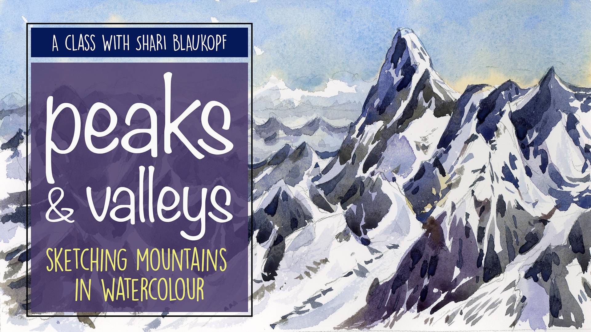 If you want to learn more about “Peaks and Valleys,” this is the week to do it. Normally priced at $49 USD or $69 CDN, I’m discounting “Peaks & Valleys: Sketching Mountains in Watercolour ” to $42 USD or $59 CDN until midnight (ET) on Sunday, November 16, 2025. And there’s no coupon required at checkout.